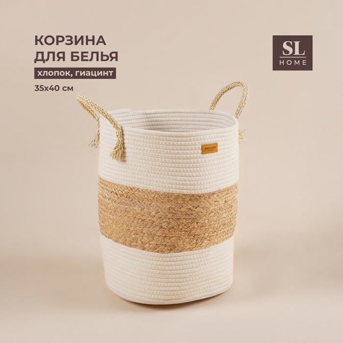 Корзина для белья Доляна «Уют», плетёная, ручная работа, 34×25×41 см, бежевая