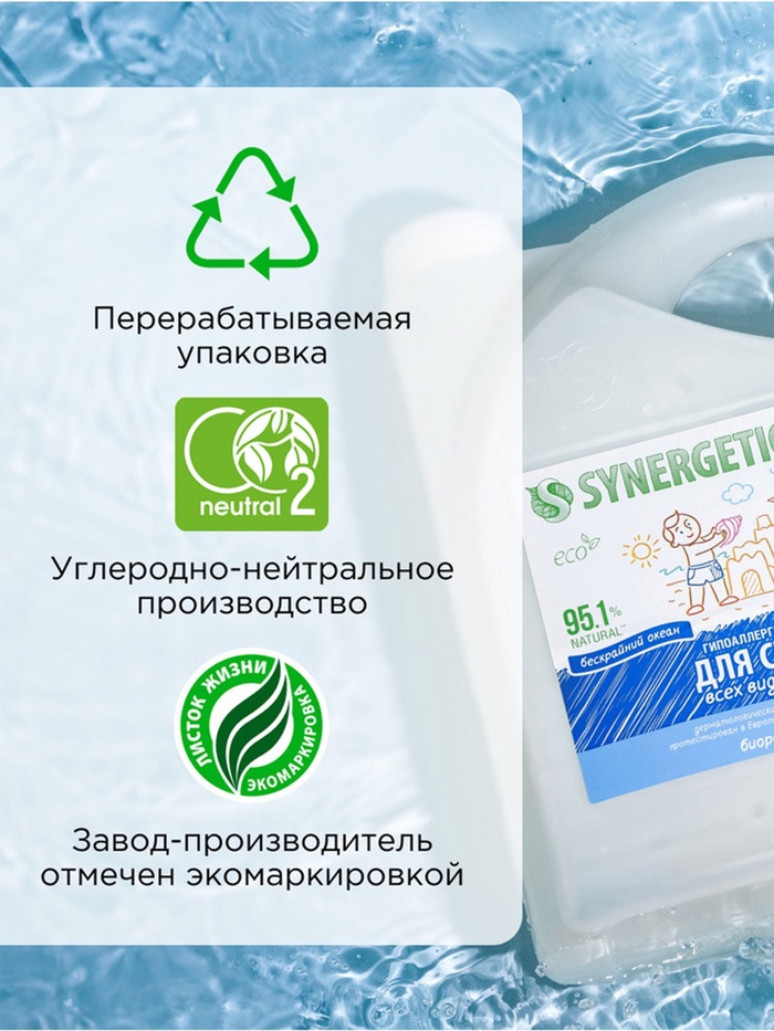 Отбеливатель-пятновыводитель SYNERGETIC, с активным кислородом, гипоаллергенный, биоразлагаемый, 25 стирок 8 фото