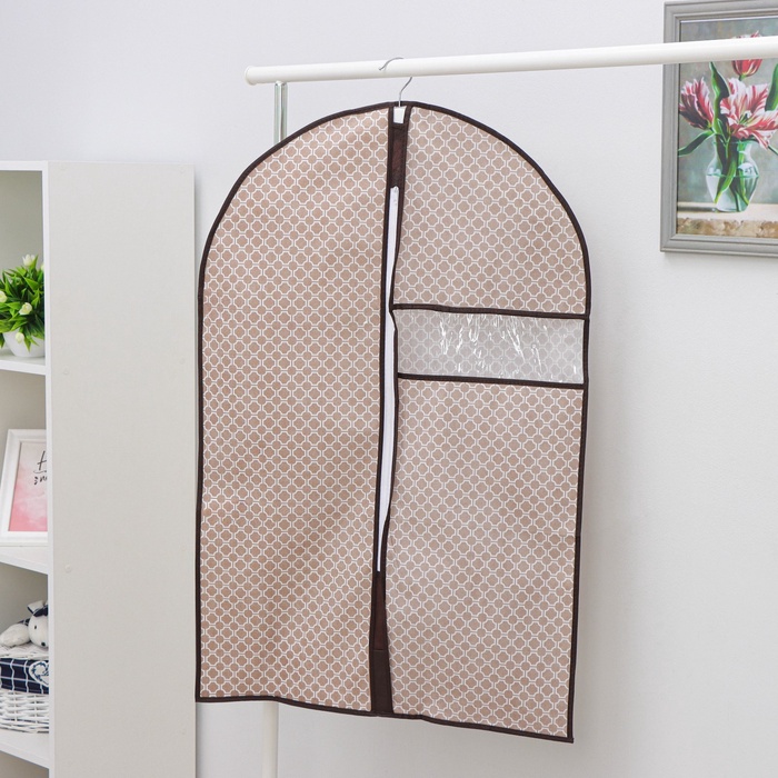 Чехол для одежды Доляна «Браун», ПВХ окно, плотный, 90×60 см, коричневый 10 фото