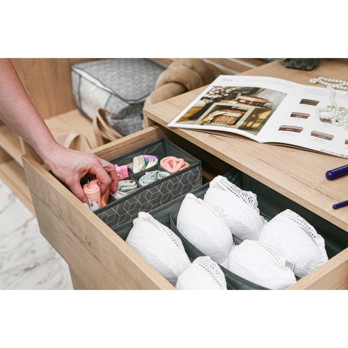 Органайзер для хранения белья Доляна «Фора», 7 ячеек, 34×30.5×10 см, серый 10 фото