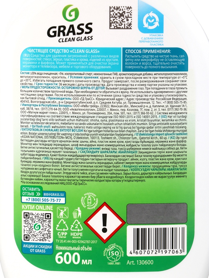 Средство для мытья стёкол и зеркал Clean Glass, 600 мл 3 фото