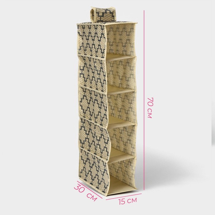 Органайзер подвесной Доляна «Гэтс», 5 отделений, 30×15×70 см, бежевый 10 фото