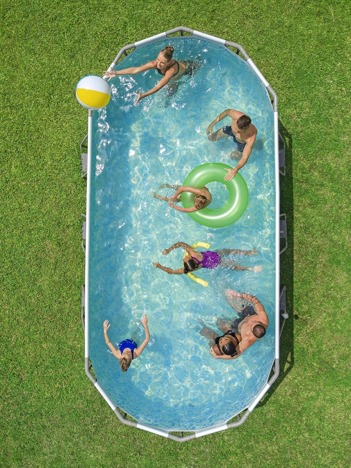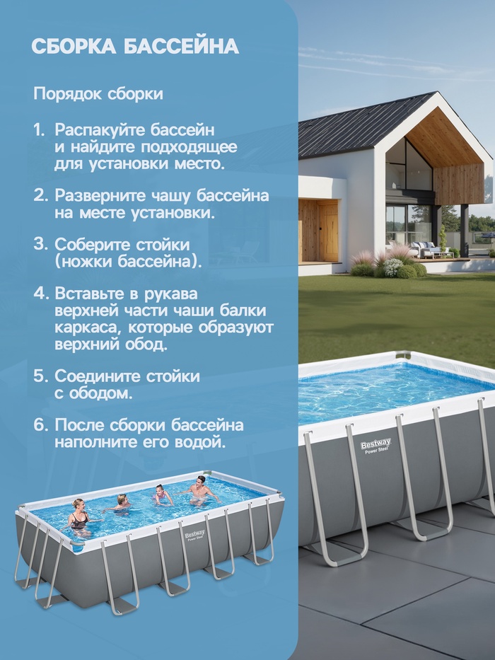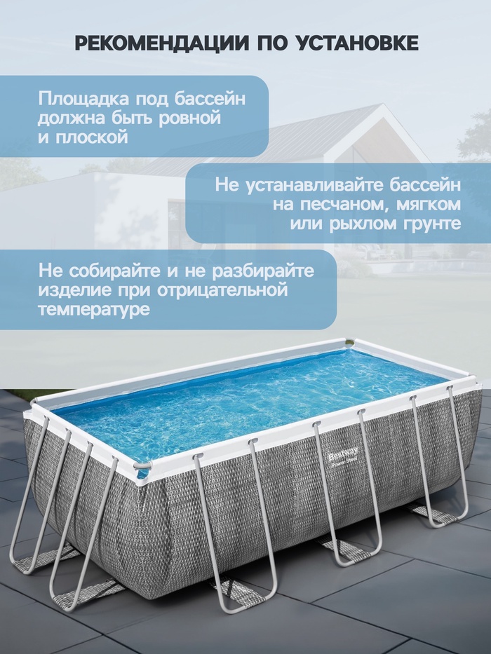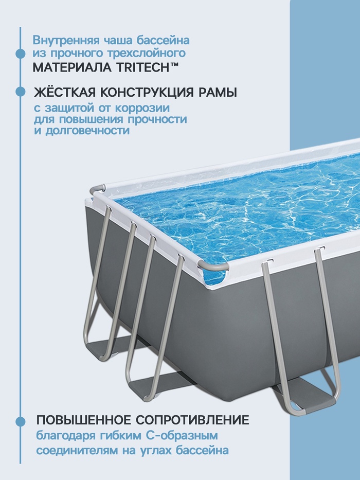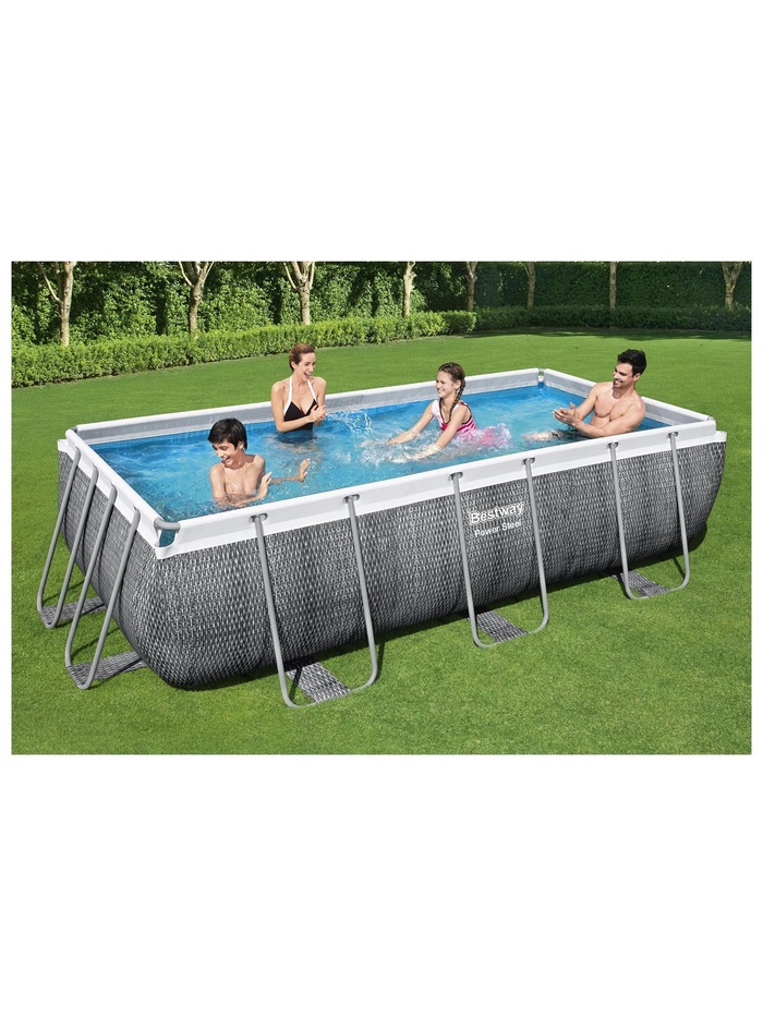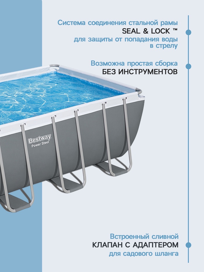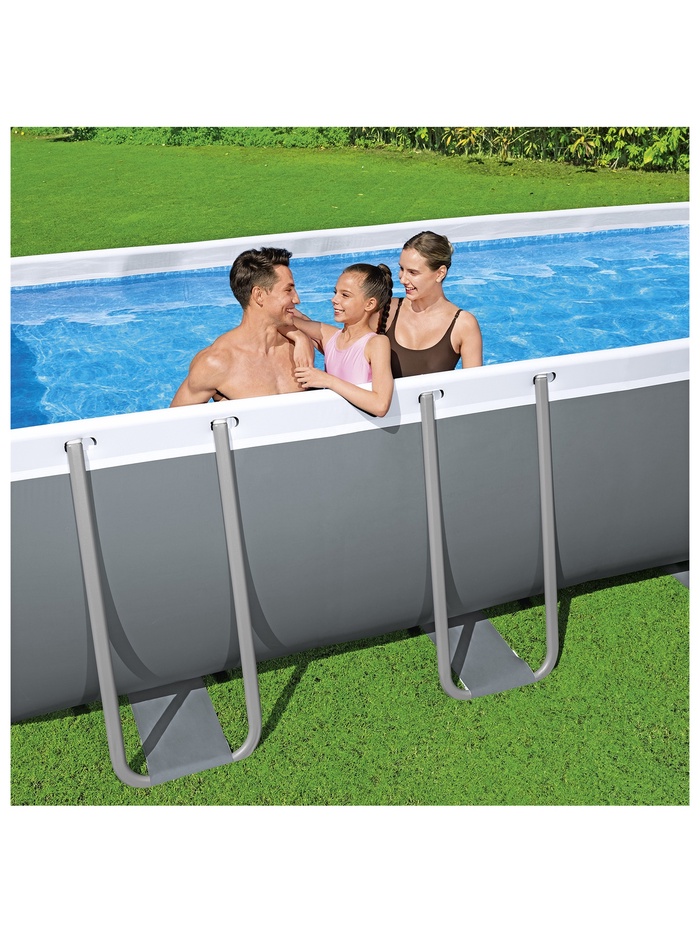 Бассейн каркасный Bestway Power Steel 56671, 488×244×122 см, песчаный фильтр-насос, лестница, тент, прямоугольный 10 фото