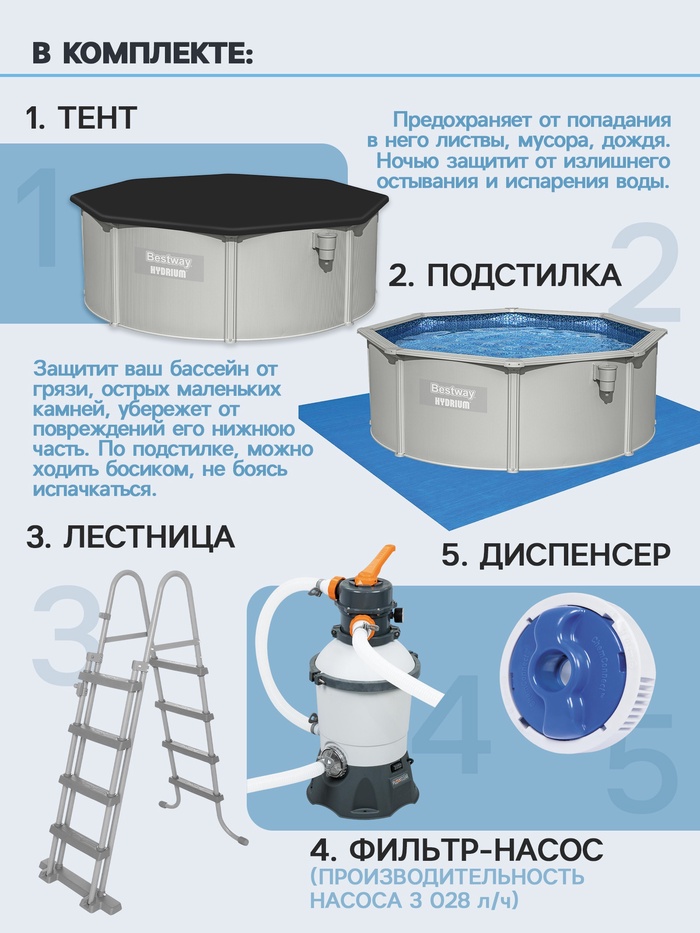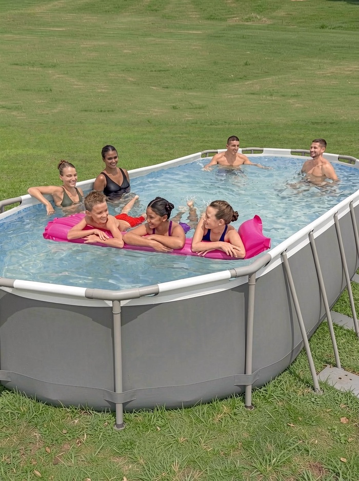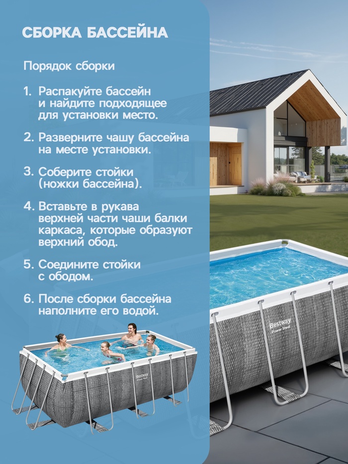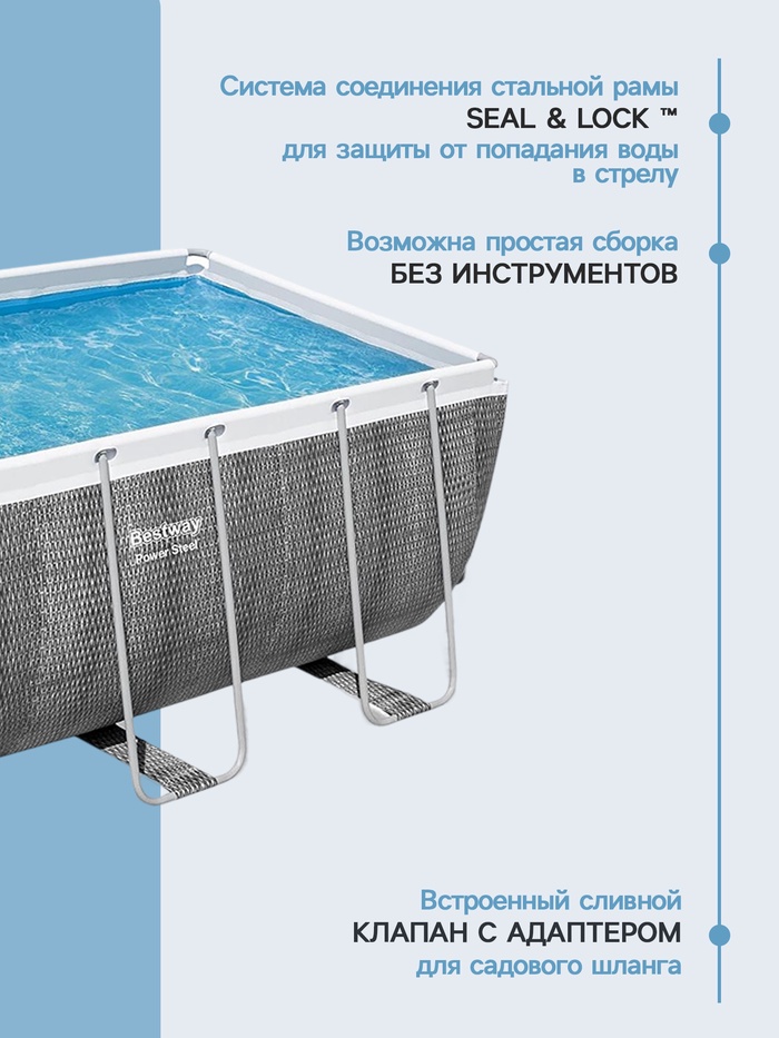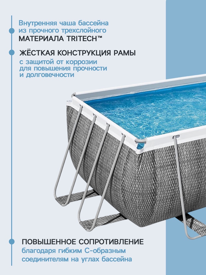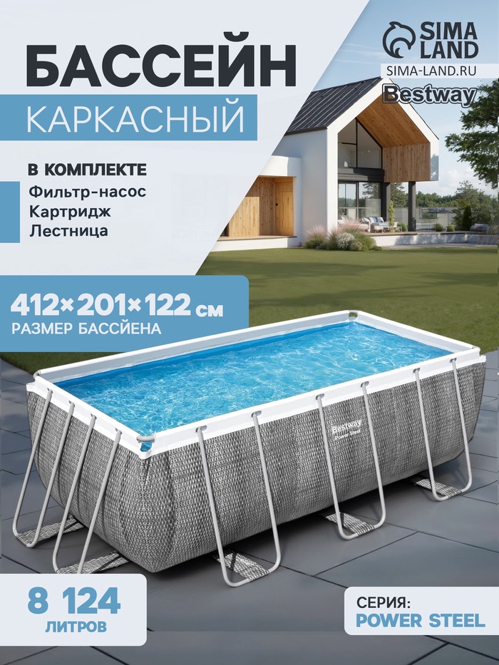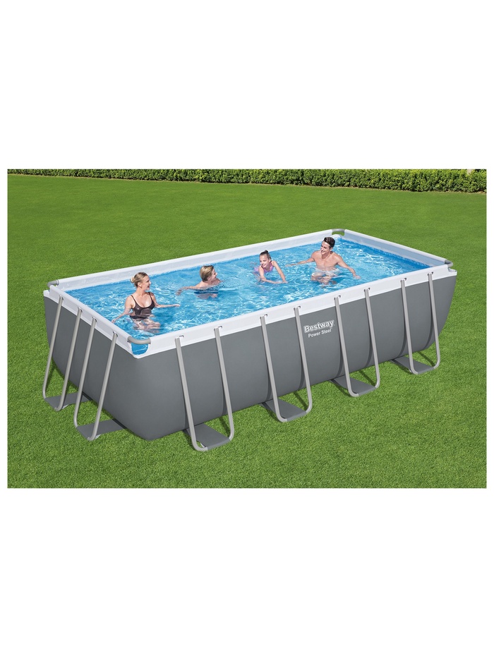 Бассейн каркасный Bestway Power Steel 56671, 488×244×122 см, песчаный фильтр-насос, лестница, тент, прямоугольный 10 фото