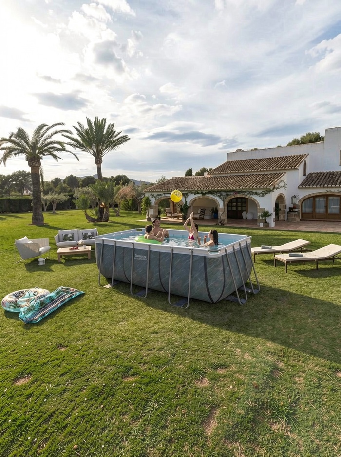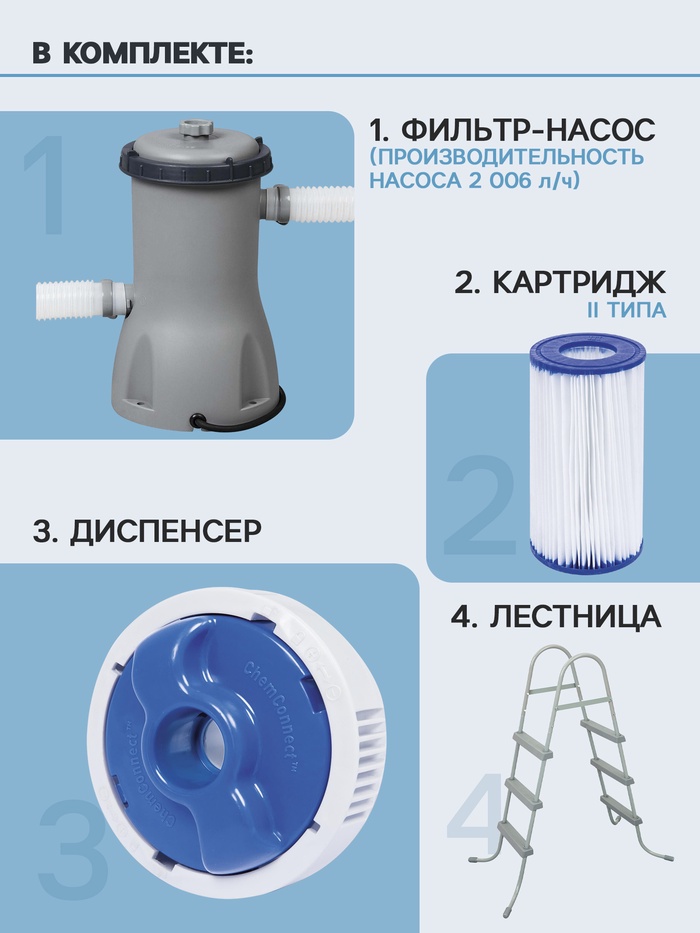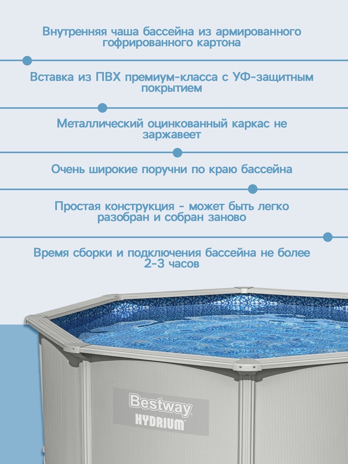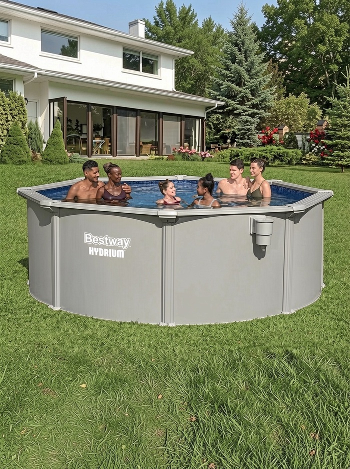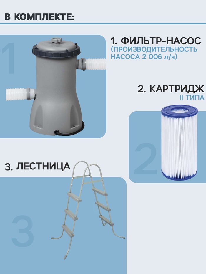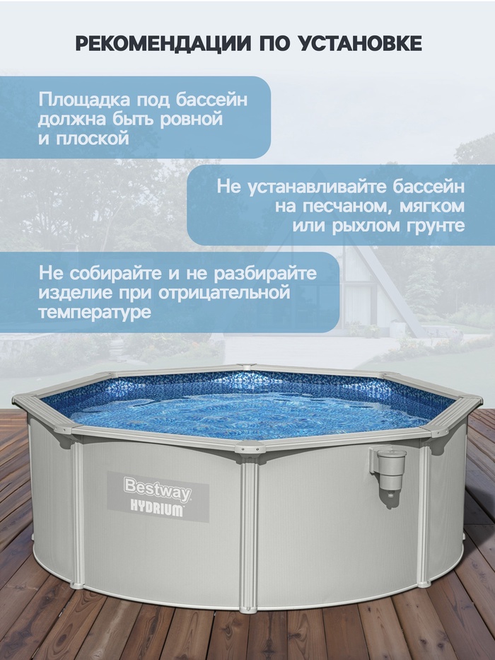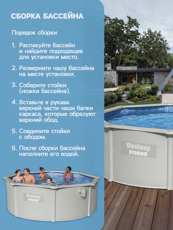 Бассейн каркасный Bestway Power Steel 56671, 488×244×122 см, песчаный фильтр-насос, лестница, тент, прямоугольный 10 фото