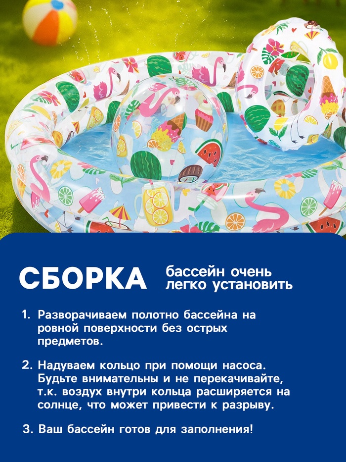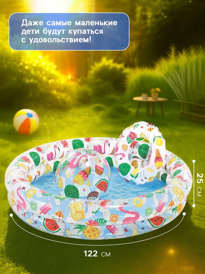 Бассейн надувной «Фрукты», 122×25 см, с кругом и мячом, от 2 лет, 59460NP INTEX 10 фото