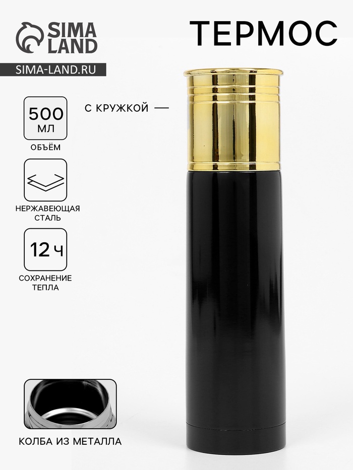 Термос, 500 мл, Пуля «Патрон», сохраняет тепло 12 ч, 25×6.5 см, чёрный 8 фото