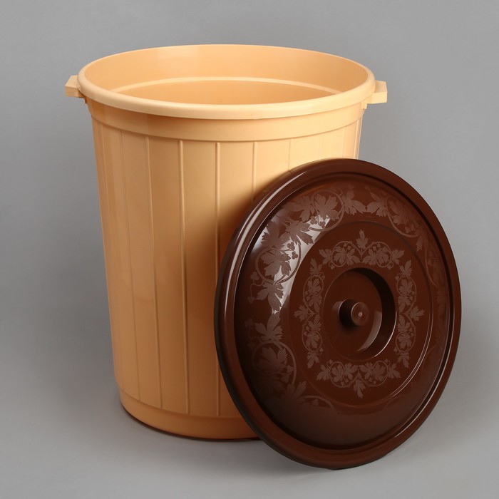 Бак пищевой, 75 л, пластиковый, с крышкой, бежевый 5 фото