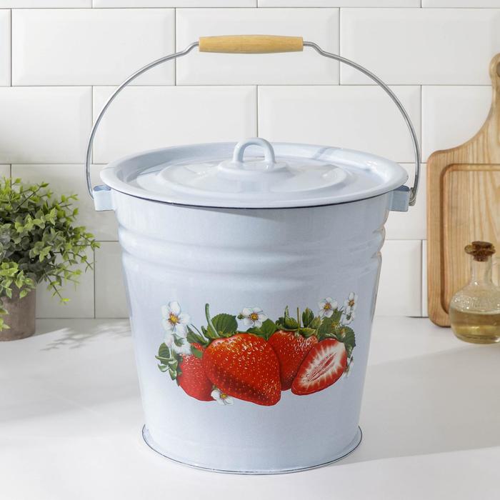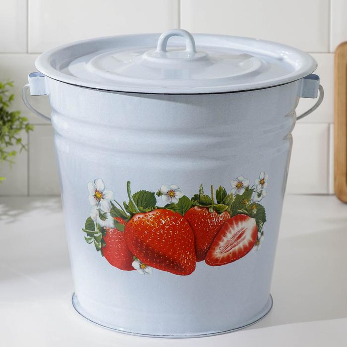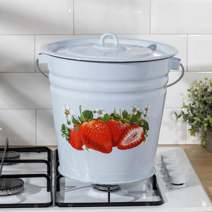 Ведро эмалированное «Клубника садовая», 12 л, с крышкой, цвет белый 5 фото