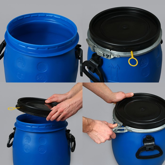 Бочка пищевая, 20 л, горловина 21.5 см, пластиковая, с крышкой 6 фото
