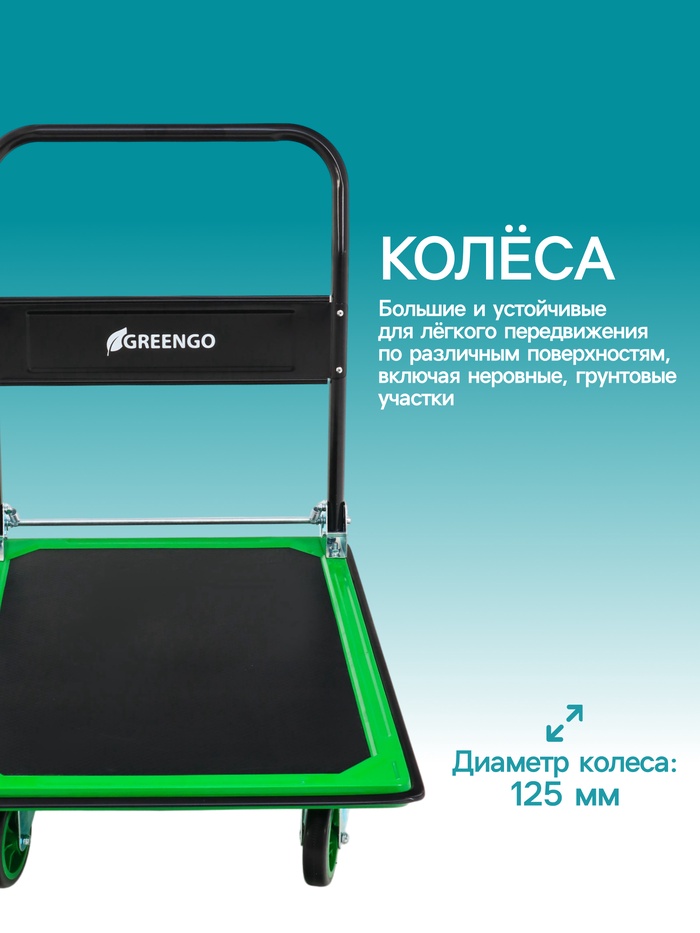Тележка платформенная складная, для перевозки грузов, нагрузка до 300 кг, сталь, Greengo 10 фото