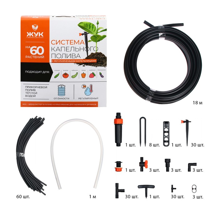 Набор для капельного полива от ёмкости, с регулируемыми капельницами, на 90 растений, «Жук»
