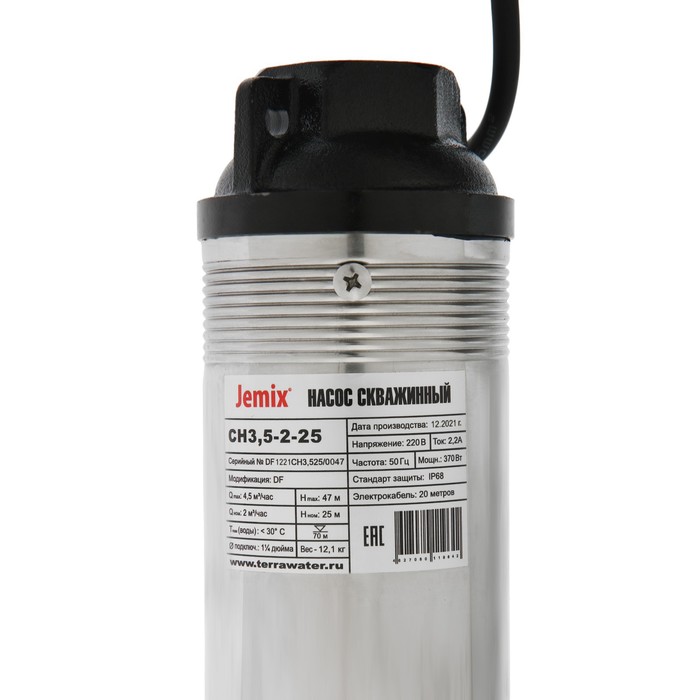 Насос скважинный JEMIX СН 3.5-2-25, центробежный, 370 Вт, напор 47 м, 75 л/мин, кабель 20 м