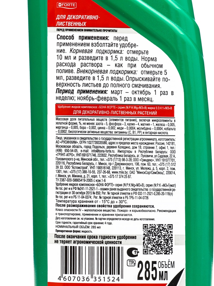 Удобрение для декоративных лиственных Bona Forte, флакон, 285 мл