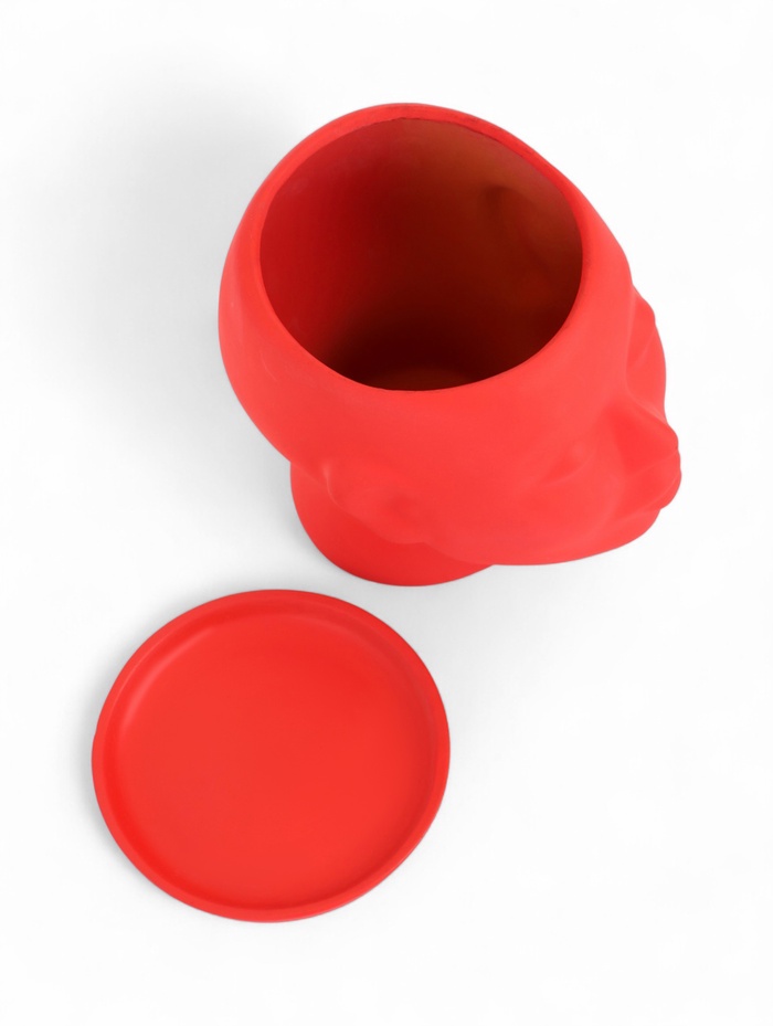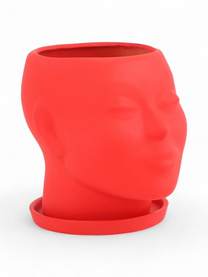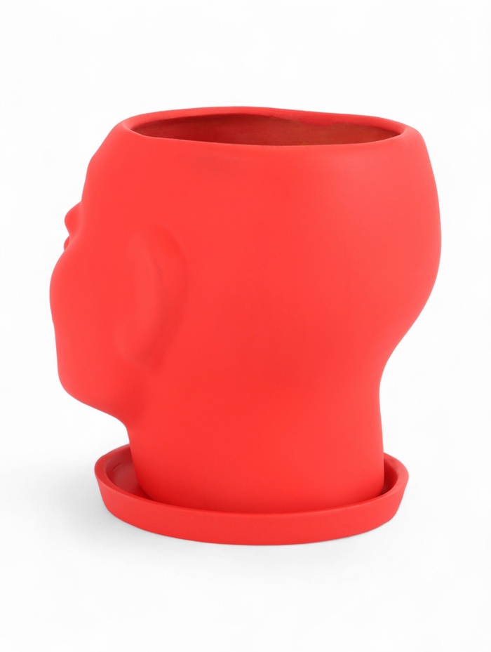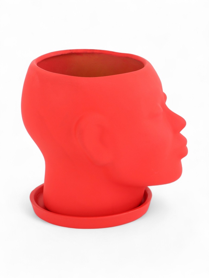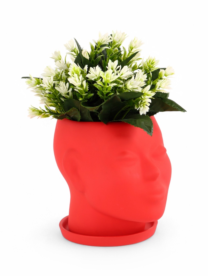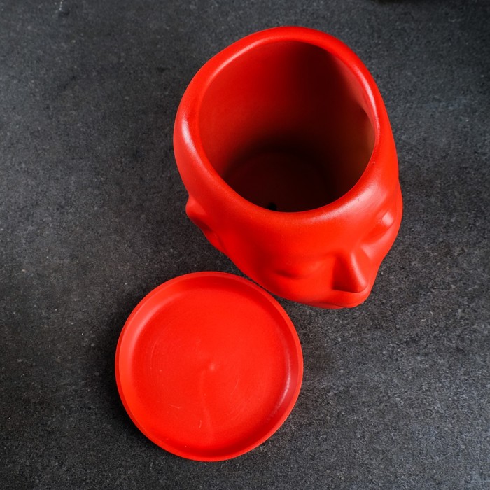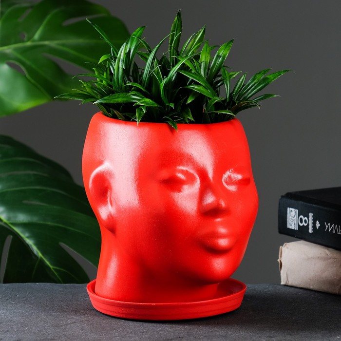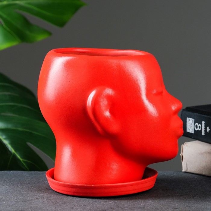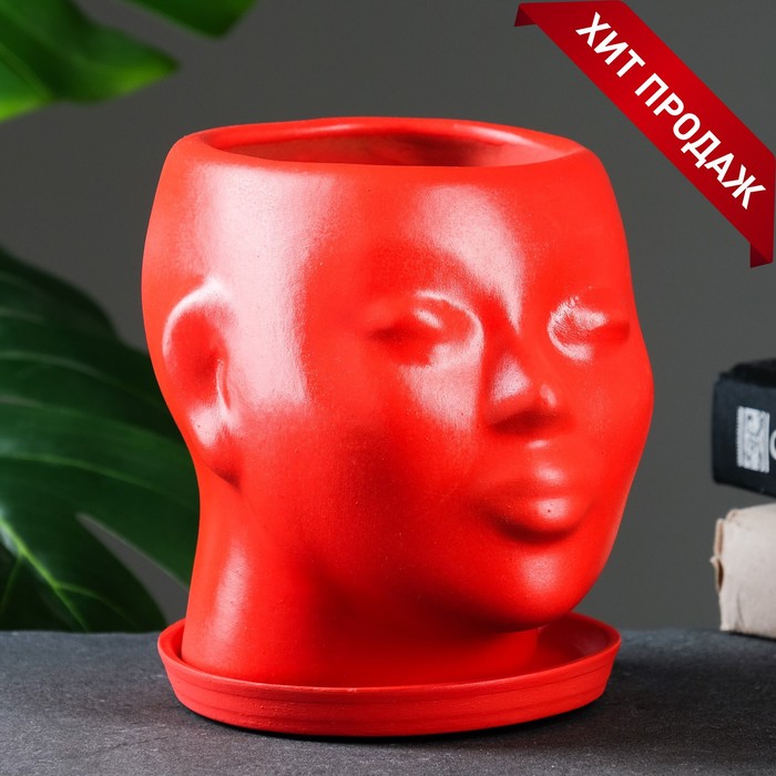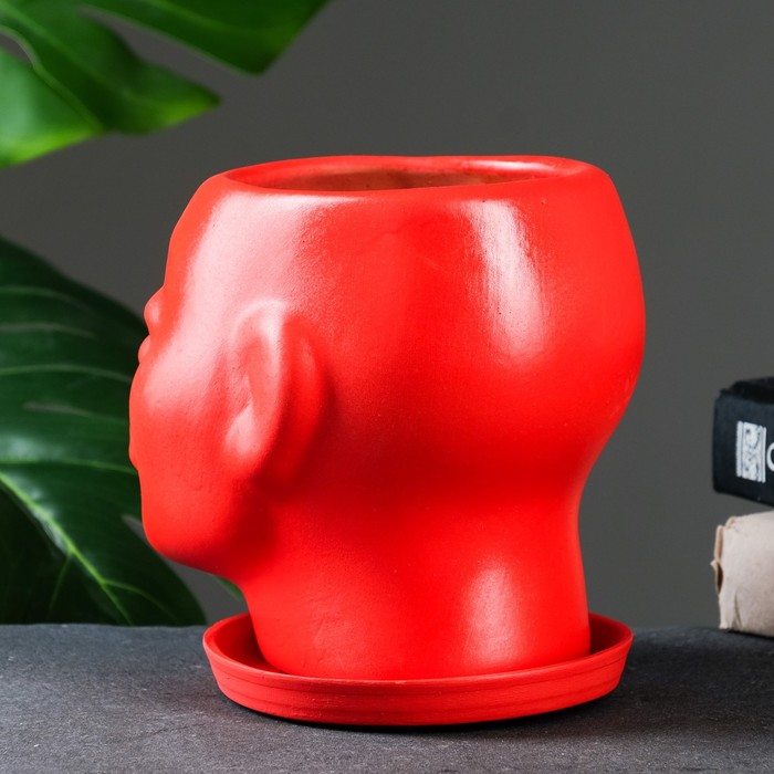 Декоративный горшок для цветов «Голова», 1.3 л, 16×16×14 см, керамический, с поддоном, красный 10 фото