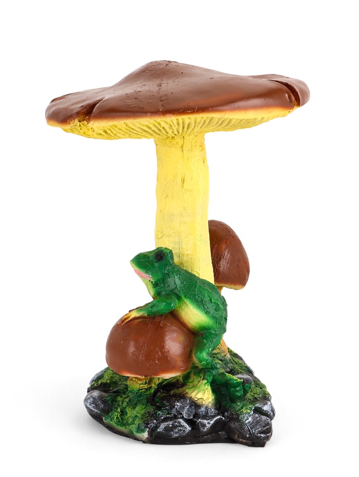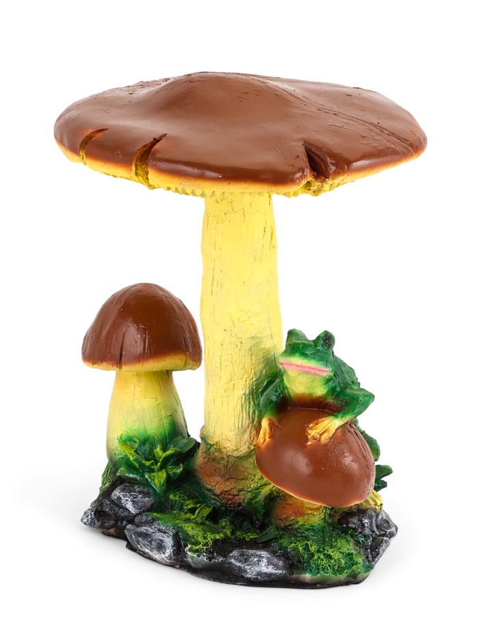 Садовая фигура из полистоуна «Гриб тройной с лягушкой», h=35 см 8 фото