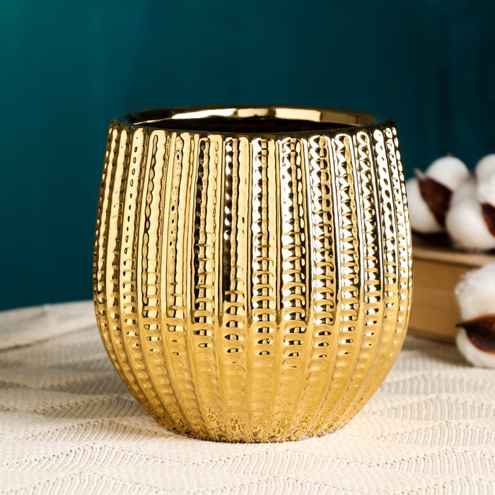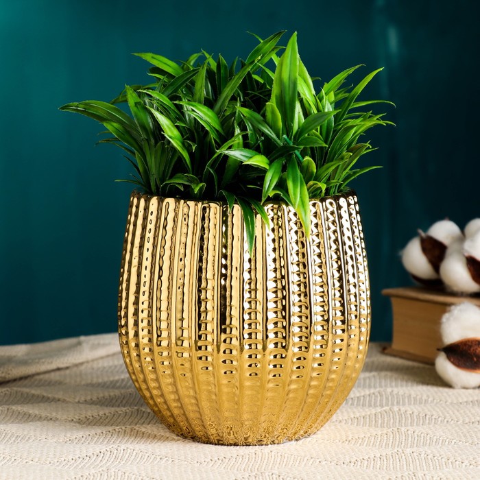 Декоративное кашпо для цветов «Кактус», 1.4 л, 14×12×12 см, керамическое, золотистое 3 фото