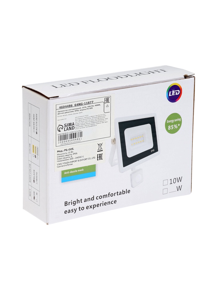 Прожектор светодиодный, 10 Вт, 900 Лм, 4000К, датчик движения, IP66 10 фото