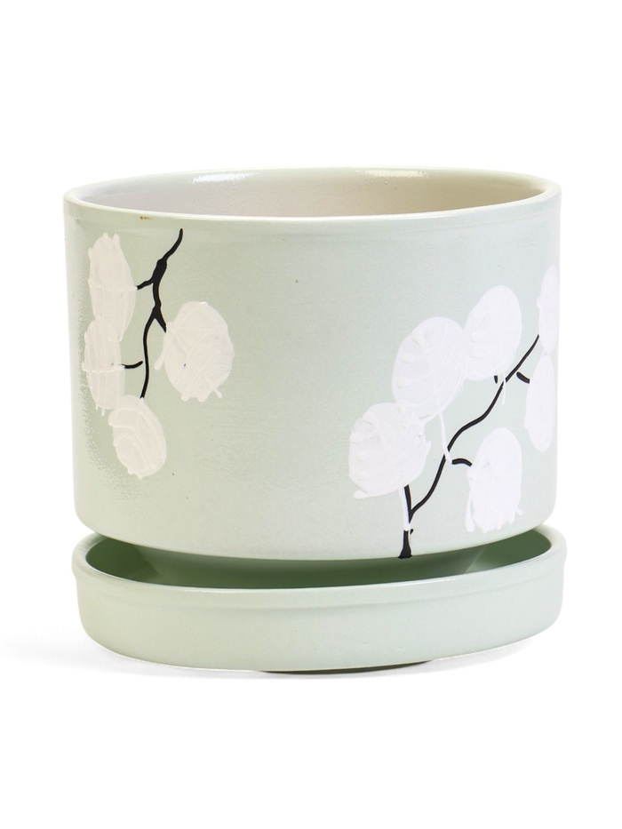 Горшок для цветов «Листья», 900 мл, d=13 см, h=12.5 см, керамический, с поддоном 7 фото