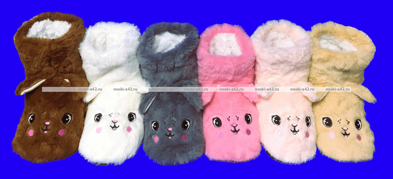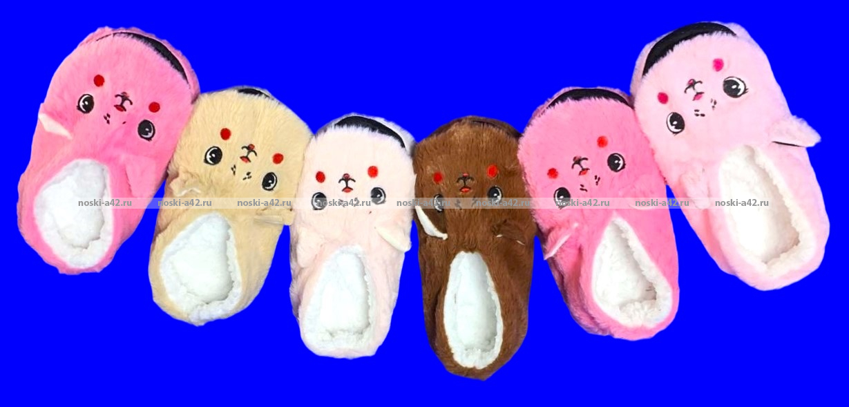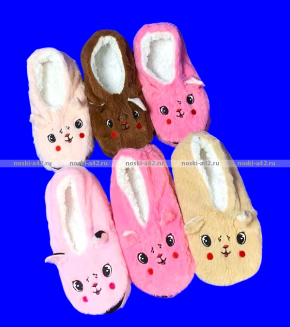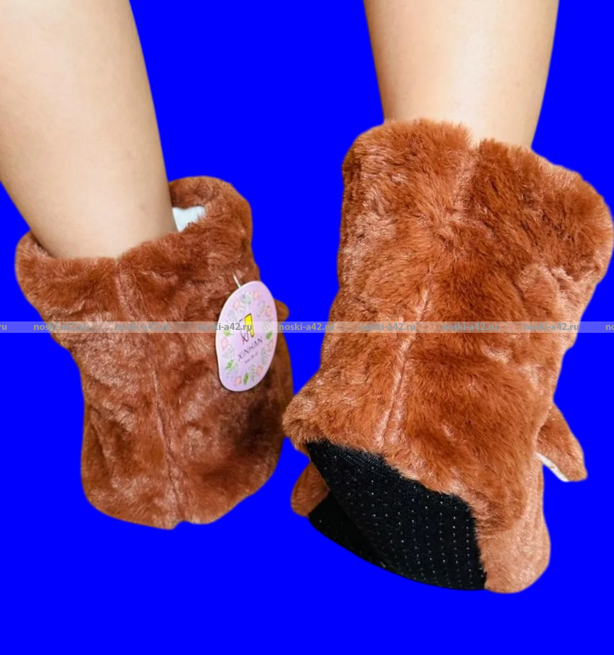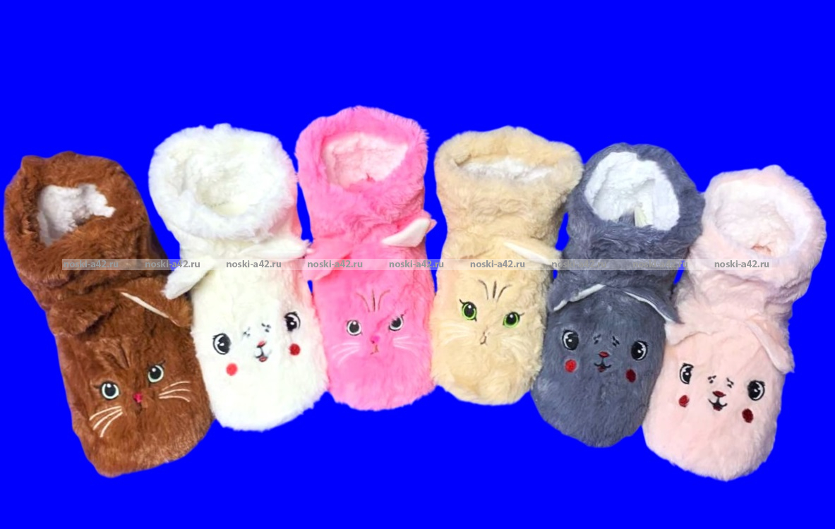 6 ПАР - Носки-тапочки с мехом Мордочки ЖЕНСКИЕ № 2