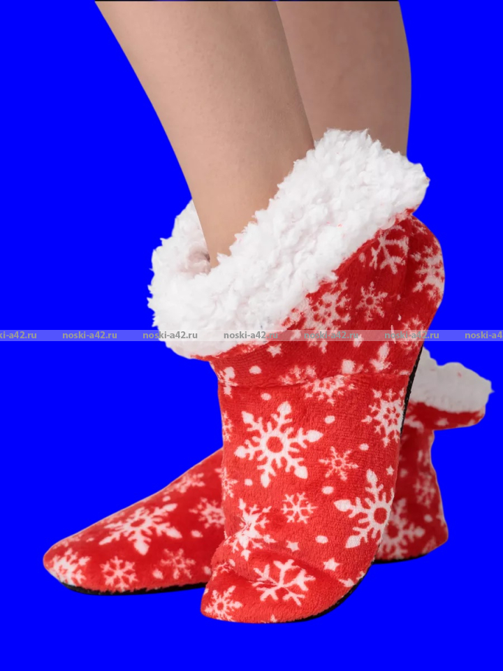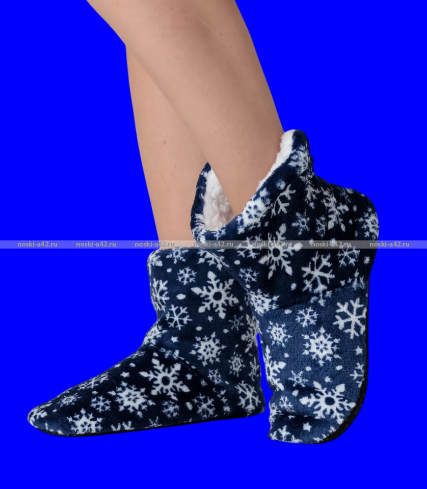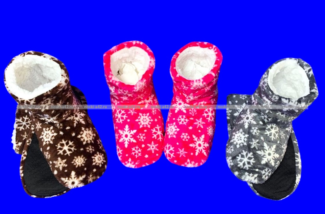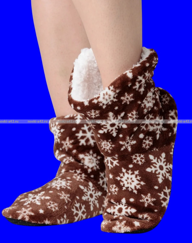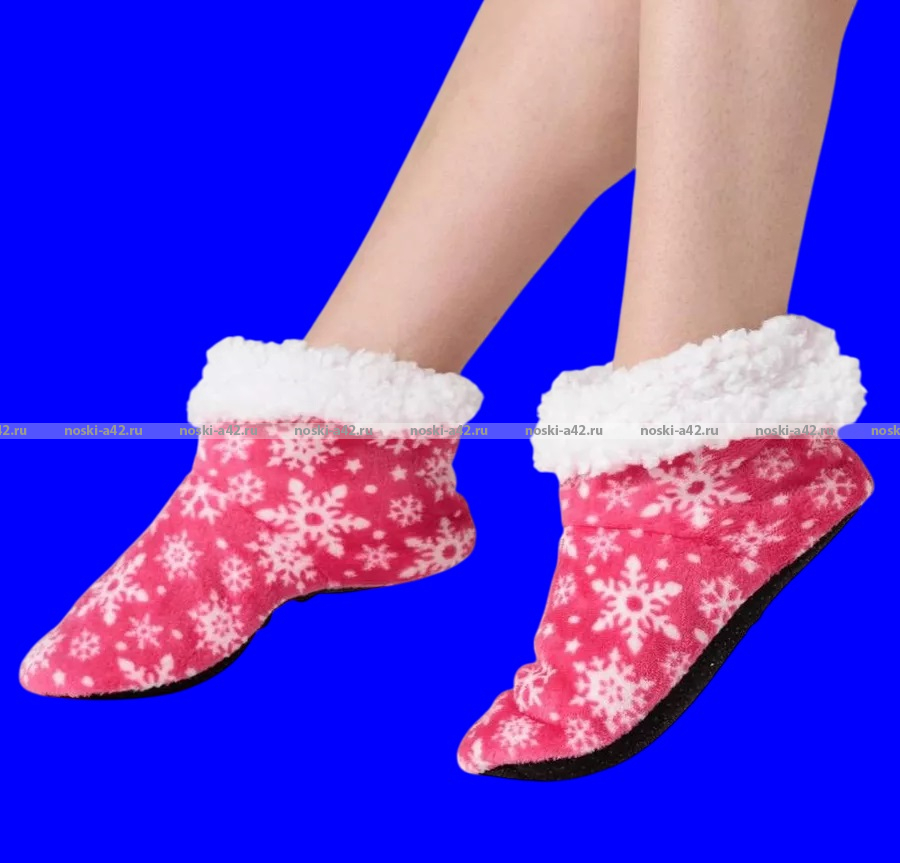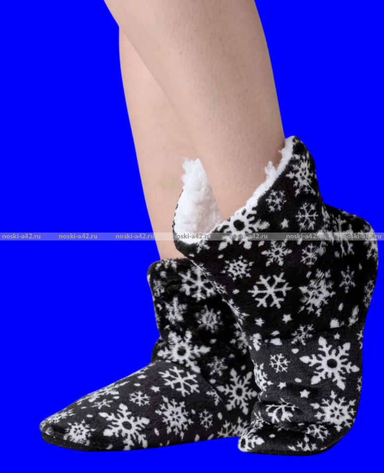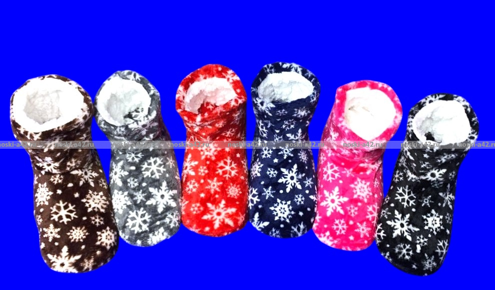 6 ПАР - Носки-САПОЖКИ женские с мехом Снежинки ВЫСОКИЕ
