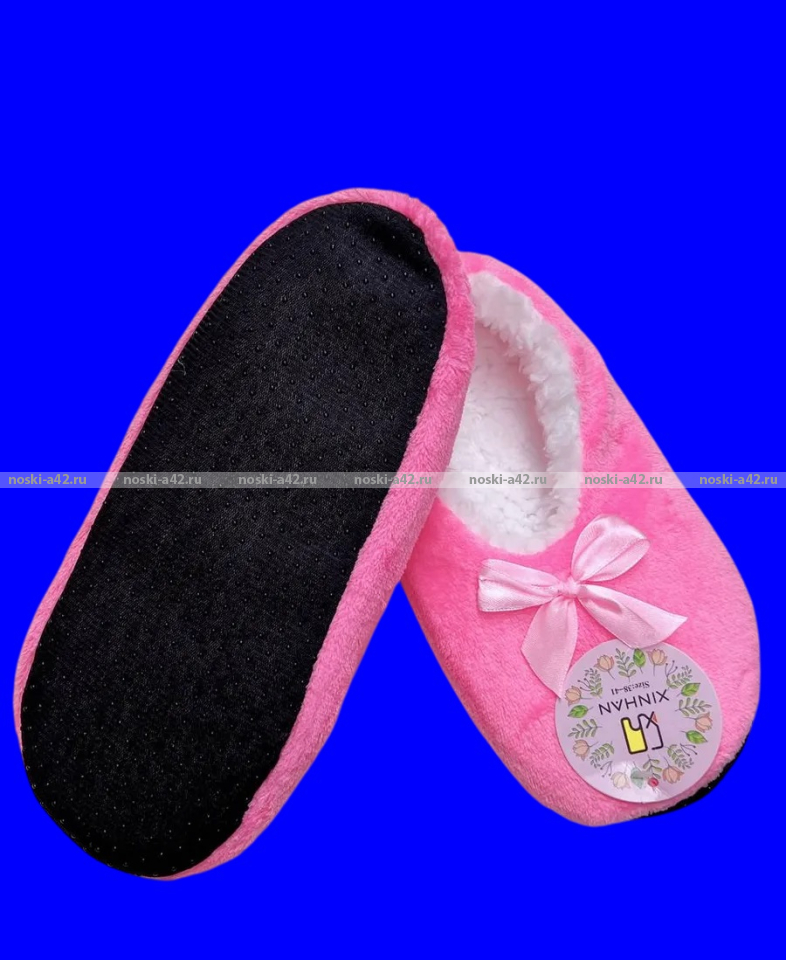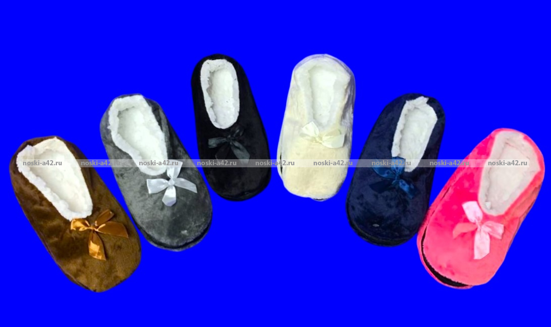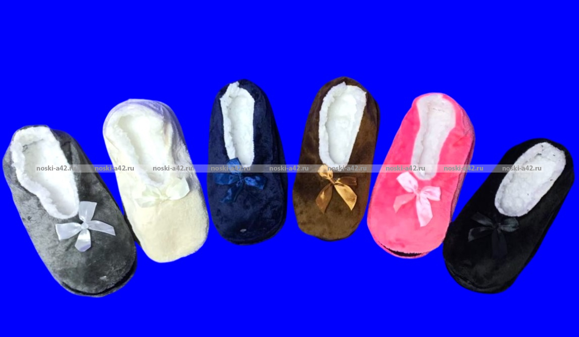 6 ПАР - Носки-тапочки внутри с мехом ОДНОТОННЫЕ женские
