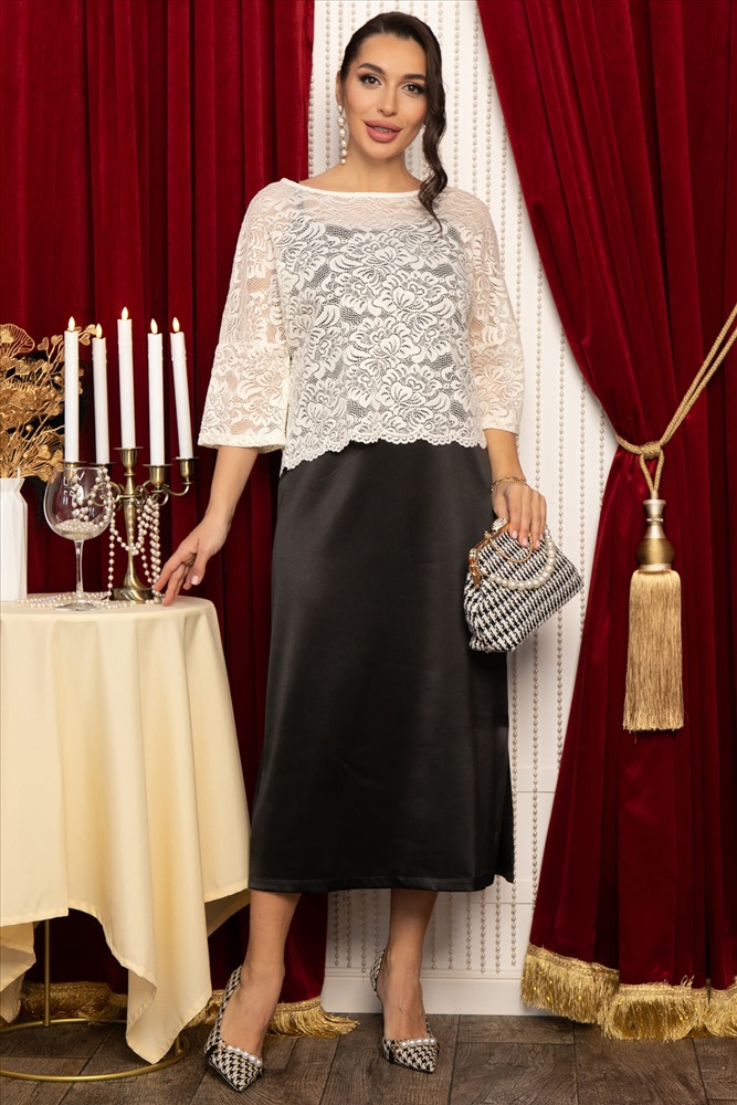 Костюм с атласной юбкой Лизетт (черный) К14677-10М 7 фото