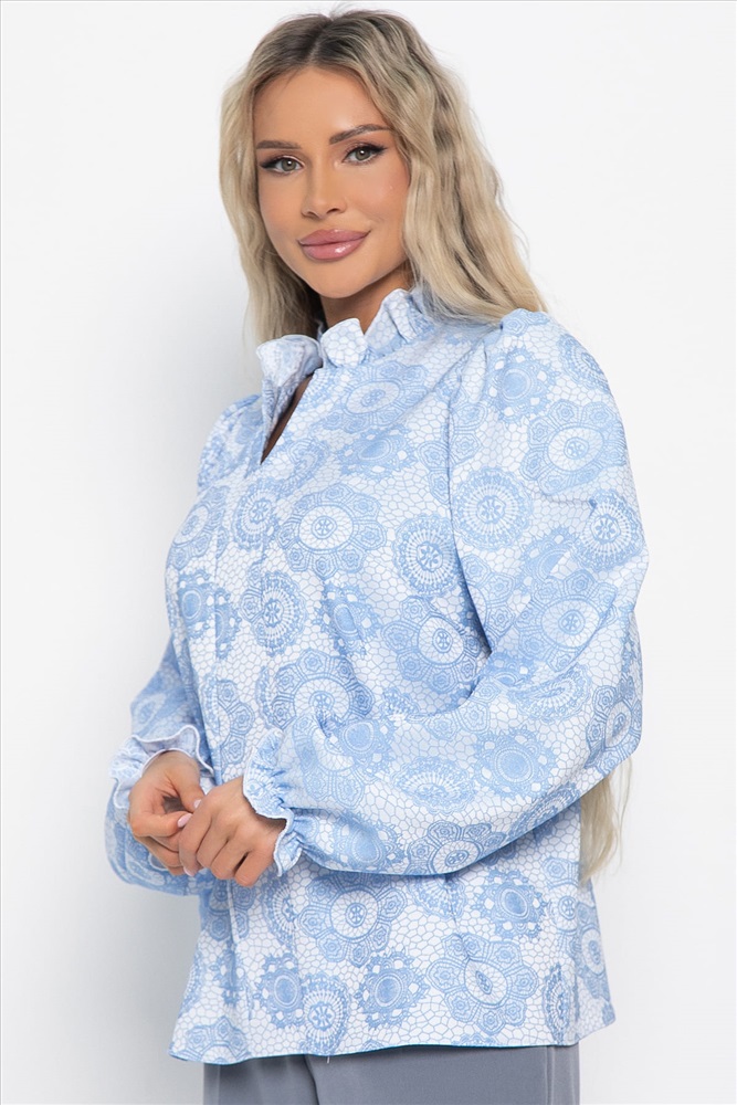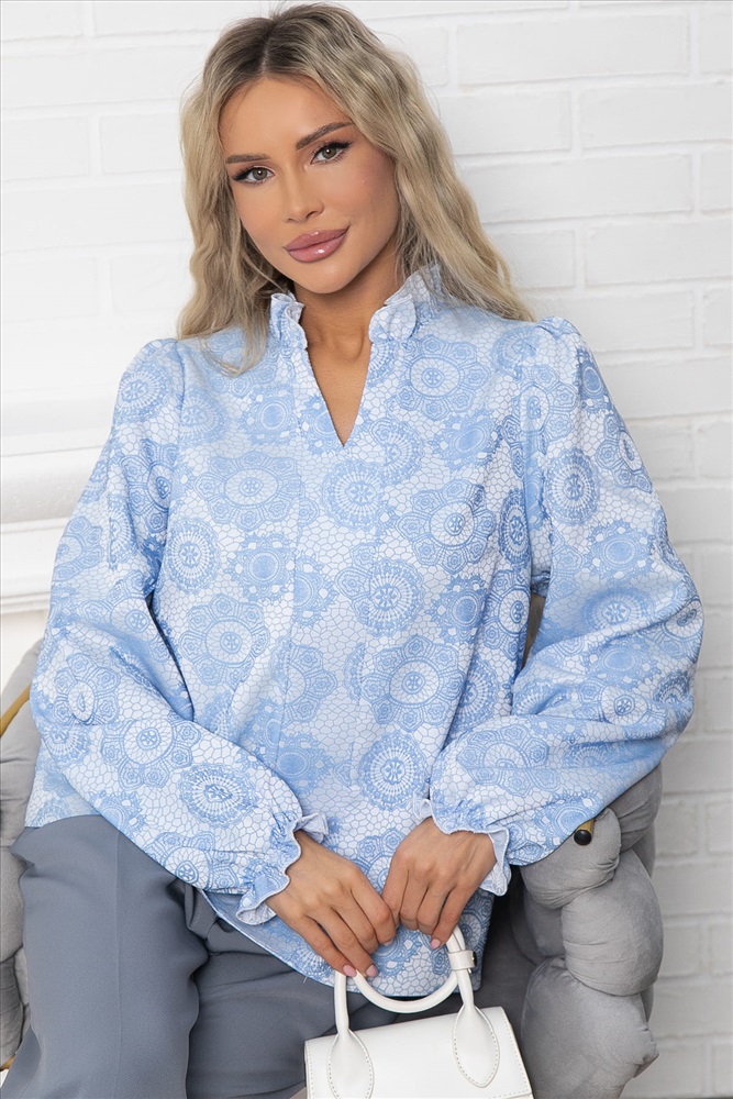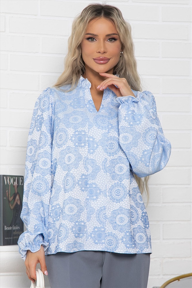 Блуза Нежный узор (голубая) Б14937-18М 7 фото