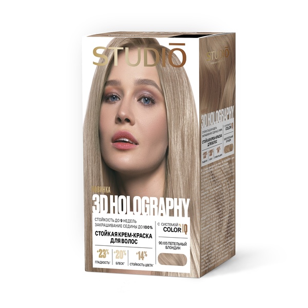 Стойкая крем-краска для волос Studio Professional 3D Holography 90.105 Пепельный блондин