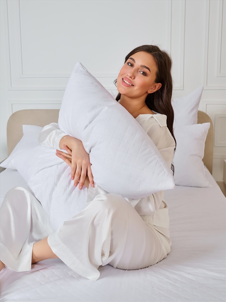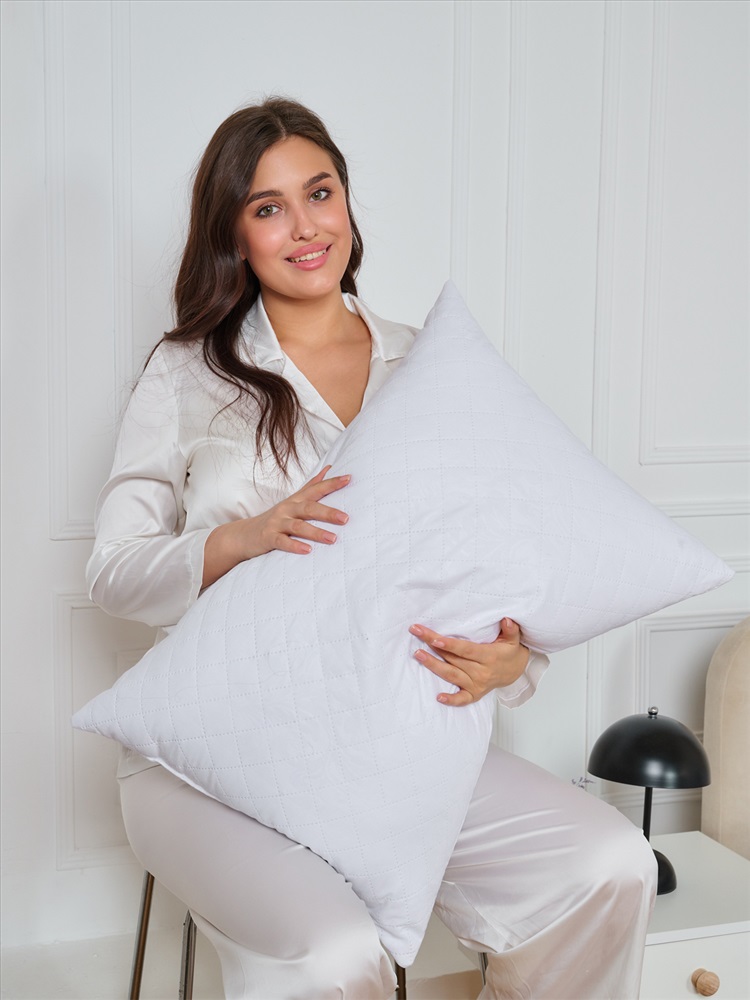 Товар пришёл как в каталоге. Качество понравилось : все ровно, все прошито... Не полиняло, не деформировалось после стирки. Подушка упругая, быстро придашь ей форму... после своих (старых и мягких) привыкли за неделю... Не лезит с неё ничего! Ткань плотная. Быстро доставлено было кстати. Не пожалела...