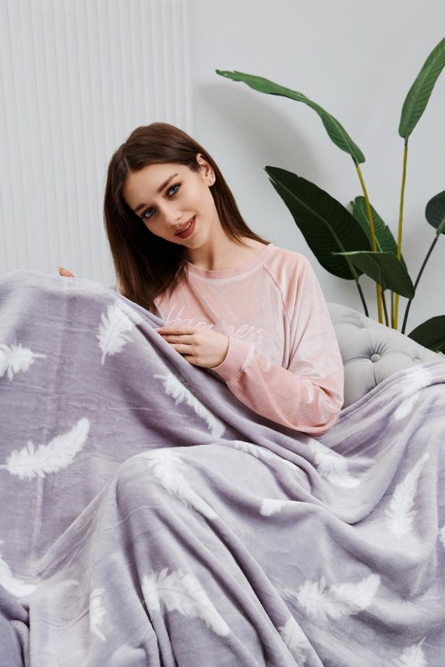 Плед велсофт ST-69 СЕРЫЙ-ПЕРО (Серый) 3 фото