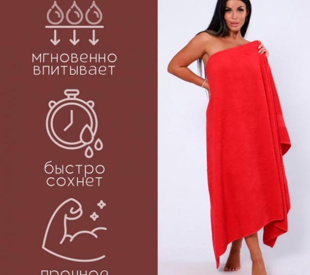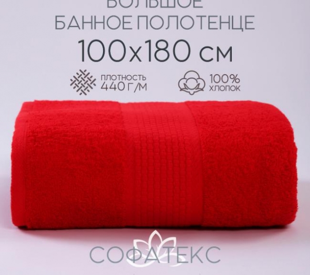 Полотенце банное махровое Софатекс 100х180 для ванны и душа (Красный) 3 фото