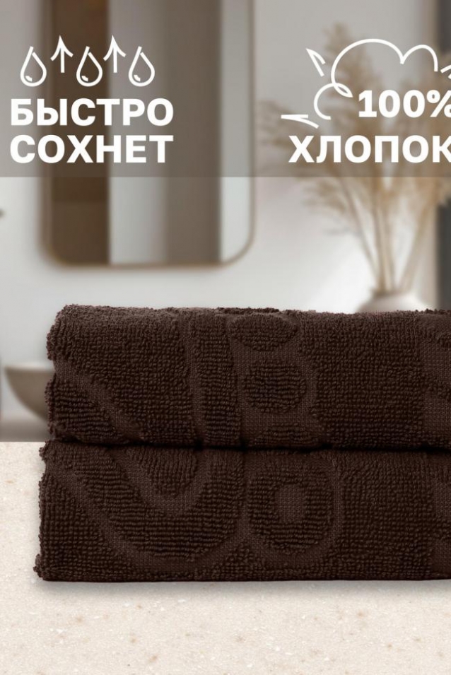 Комплект полотенец для ног махровое Софатекс 50 * 70 коврик ножки 2шт (Шоколад) 3 фото