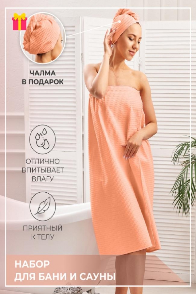 Комплект полотенец для ног махровое Софатекс 50 * 70 коврик ножки 2шт (Персик) 3 фото