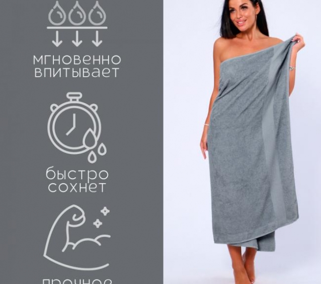 Полотенце банное махровое Софатекс 100х180 для ванны и душа (Серый) 3 фото