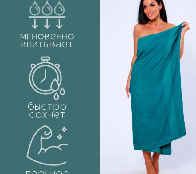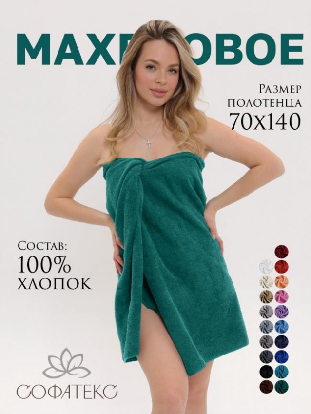 Полотенце махровое банное большое Софатекс 70 * 140 для ванной и бани bs (Темно-зеленый) 3 фото