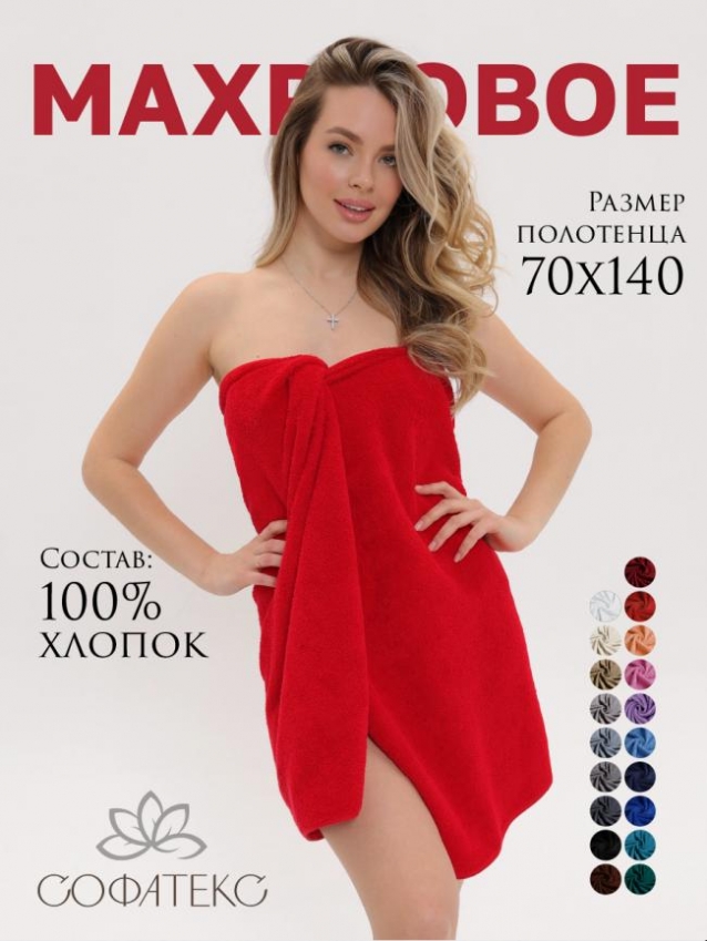 Полотенце махровое банное большое Софатекс 70 * 140 для ванной и бани bs (Красный) 3 фото