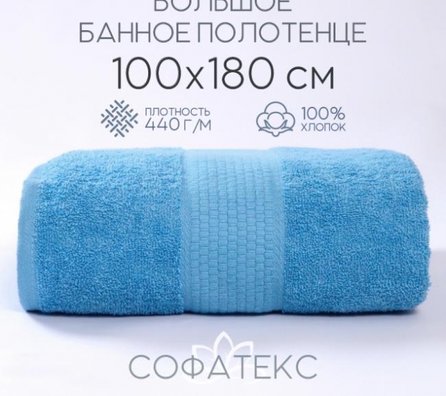 Полотенце банное махровое Софатекс 100х180 для ванны и душа (Голубой) 3 фото