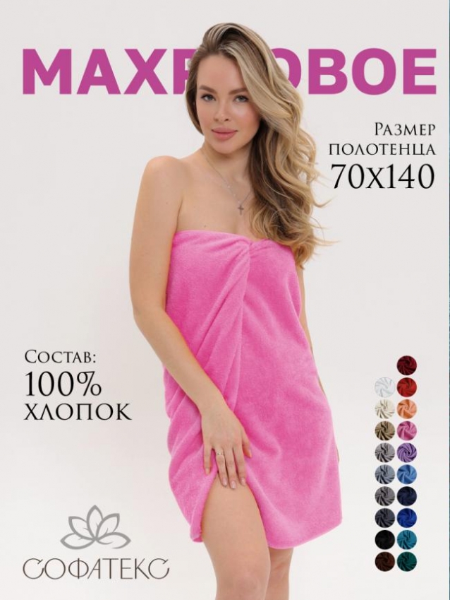 Полотенце махровое банное большое Софатекс 70 * 140 для ванной и бани bs (Розовый) 3 фото