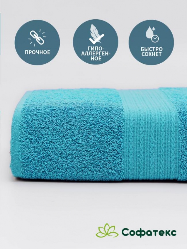 Полотенце банное махровое Софатекс 100х180 для ванны и душа (Морская волна) 3 фото