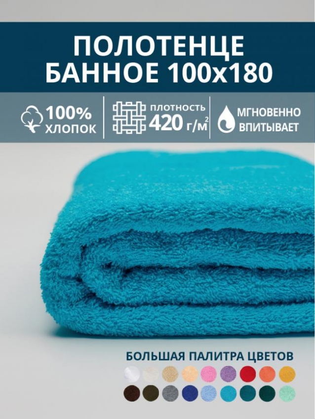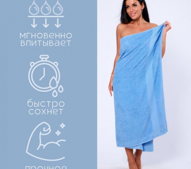 Полотенце махровое банное большое Софатекс 100 * 180 для ванной и бани bs (Ярко-голубой) 3 фото
