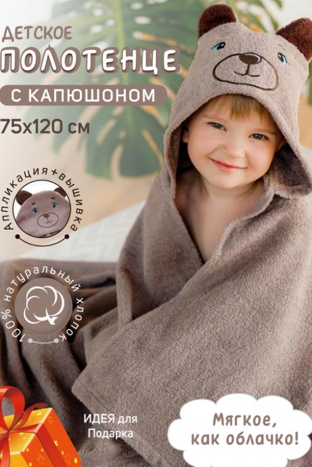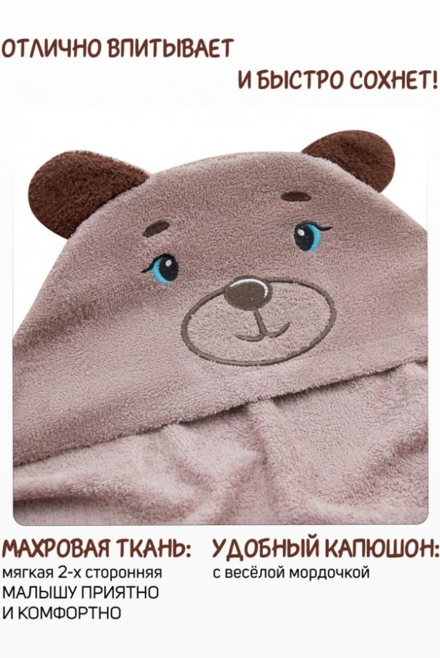 Полотенце-уголок махровый Звери 75*120 (Кофейный) 3 фото