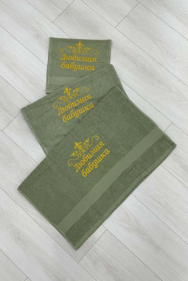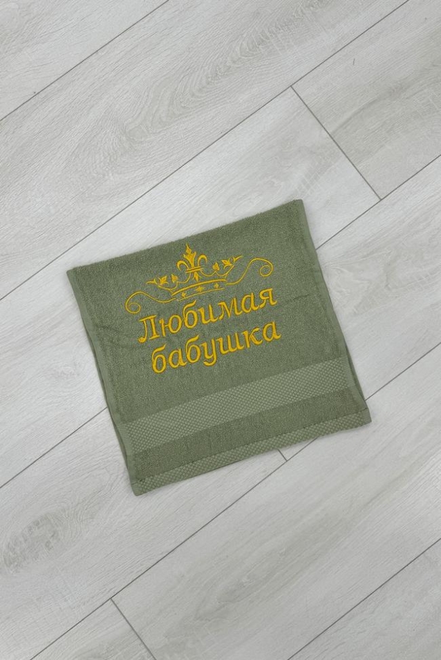 14419/5 Любимая бабушка полотенце махровое плотность 400гр (Хаки) 2 фото