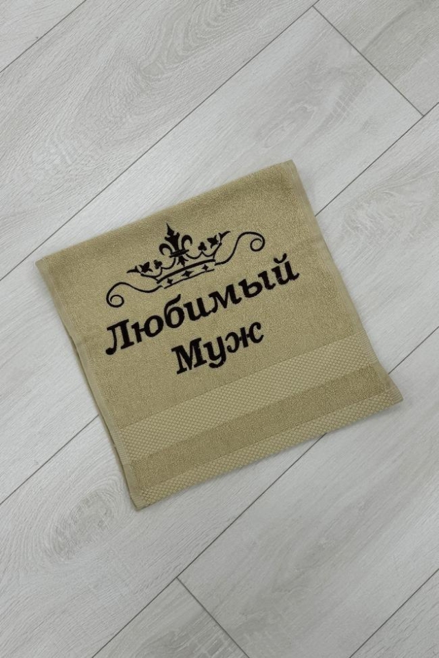 14419/3 Любимый муж полотенце махровое плотность 400гр (Бежевый) 2 фото