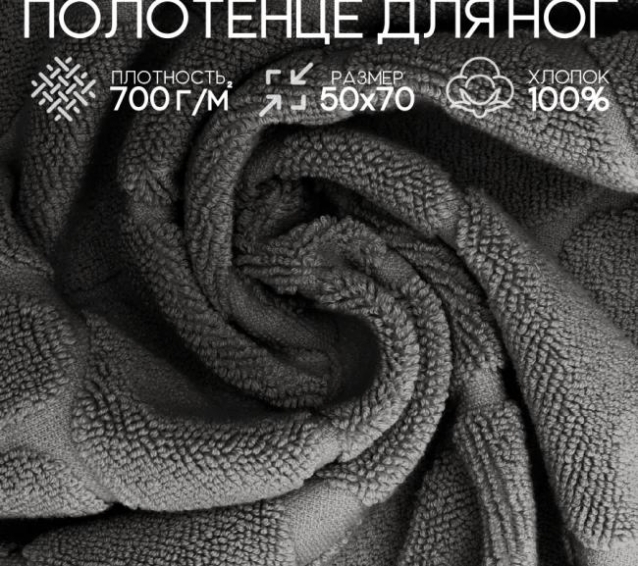 Полотенце для ног махровое Софатекс 50 * 70 коврик ножки (Черный) 3 фото