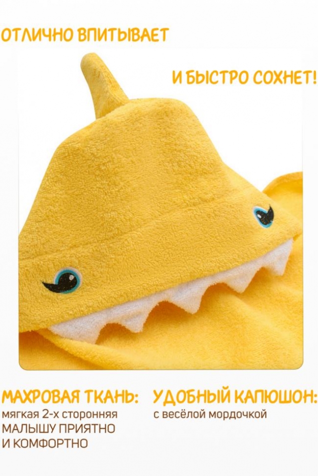 Полотенце-уголок махровый Звери 75*120 (Желтый) 3 фото
