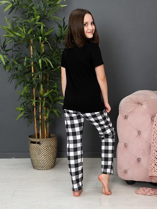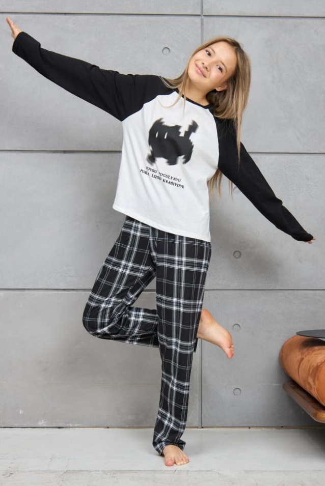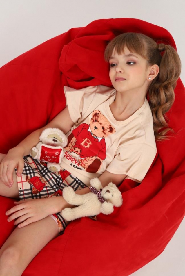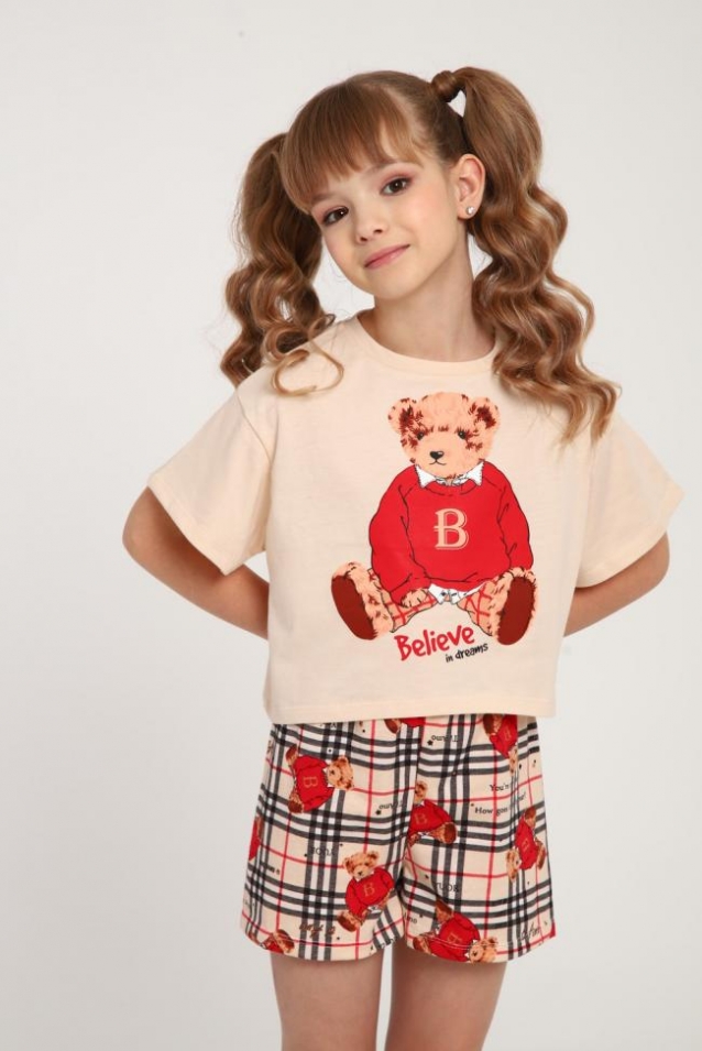 Пижама для девочки Медведь-клетка ПД-019-075 (Крем/красный) 3 фото