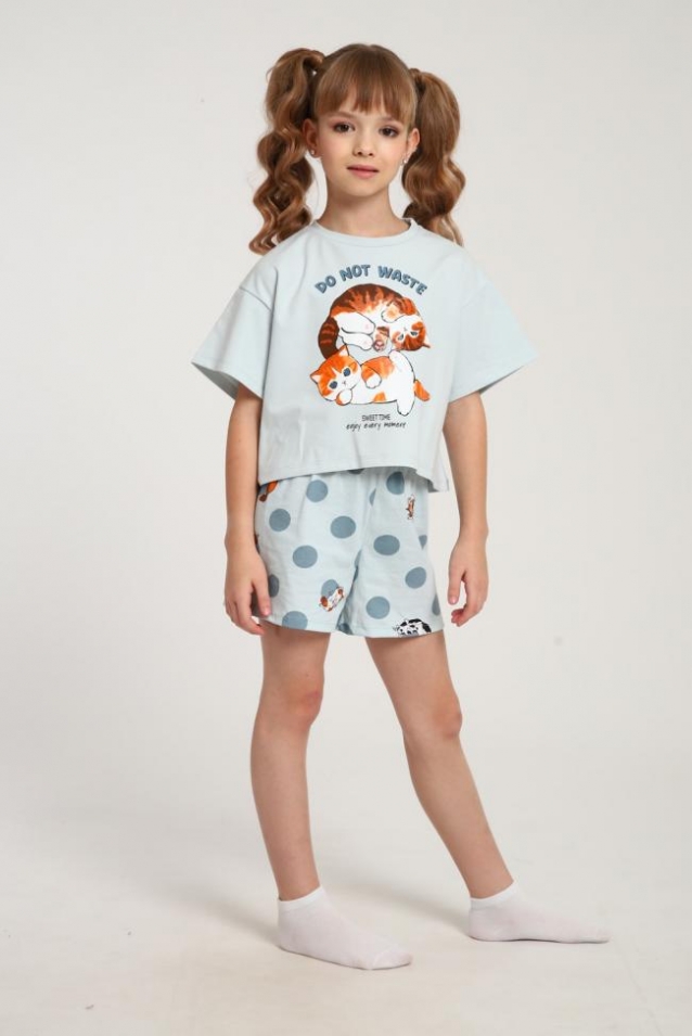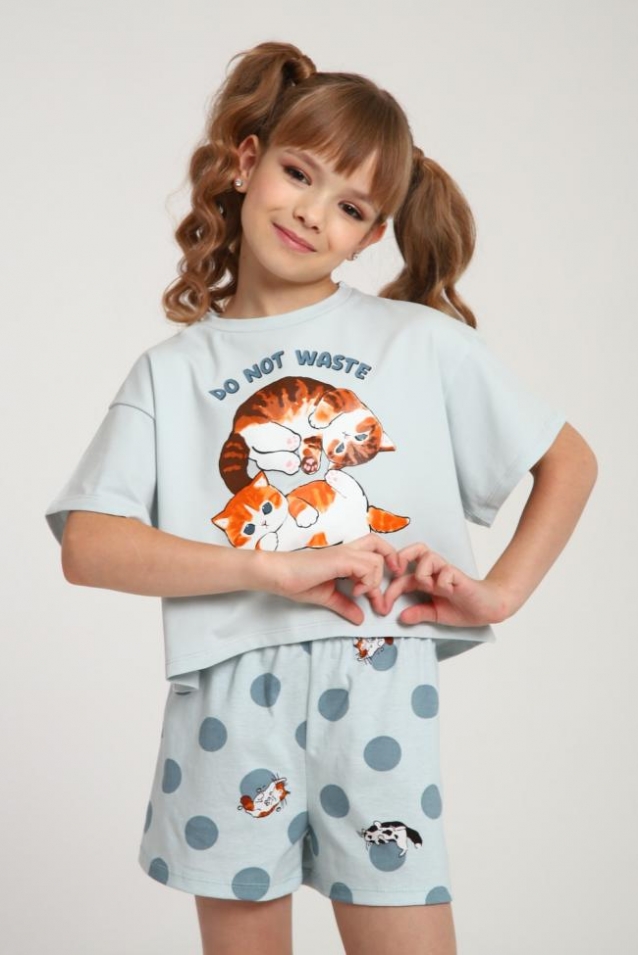 Пижама для девочки Котята ПД-019-077 (Серо-зеленый/бирюза) 3 фото
