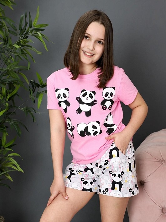 Пижама "Спросонок-шорты-зайчата" (Розовый) 4 фото
