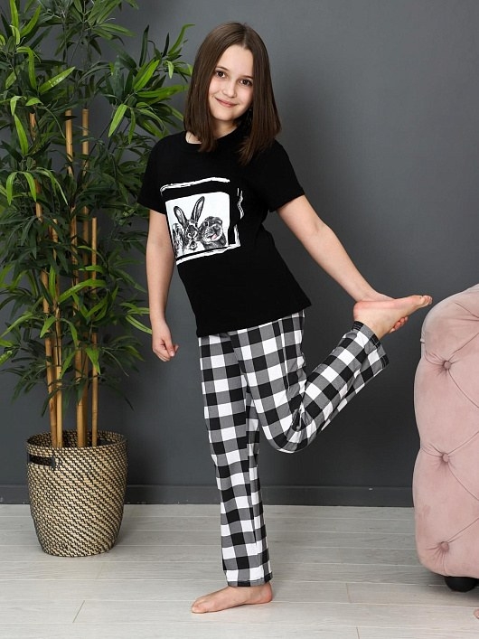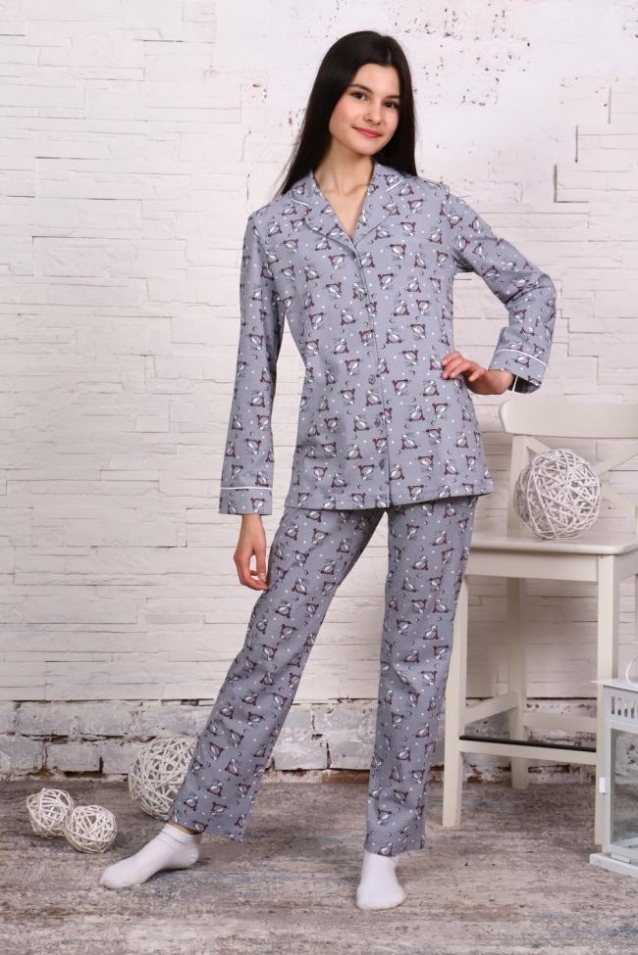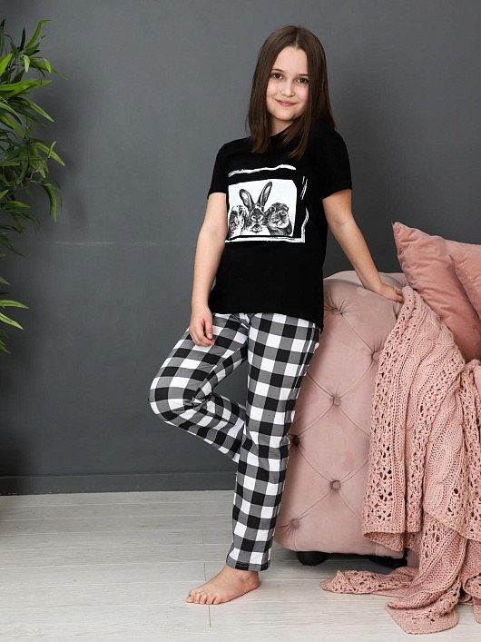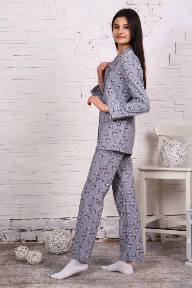 Пижама-костюм для девочки арт. ПД-006 (Зайцы на самокатах серые) 3 фото